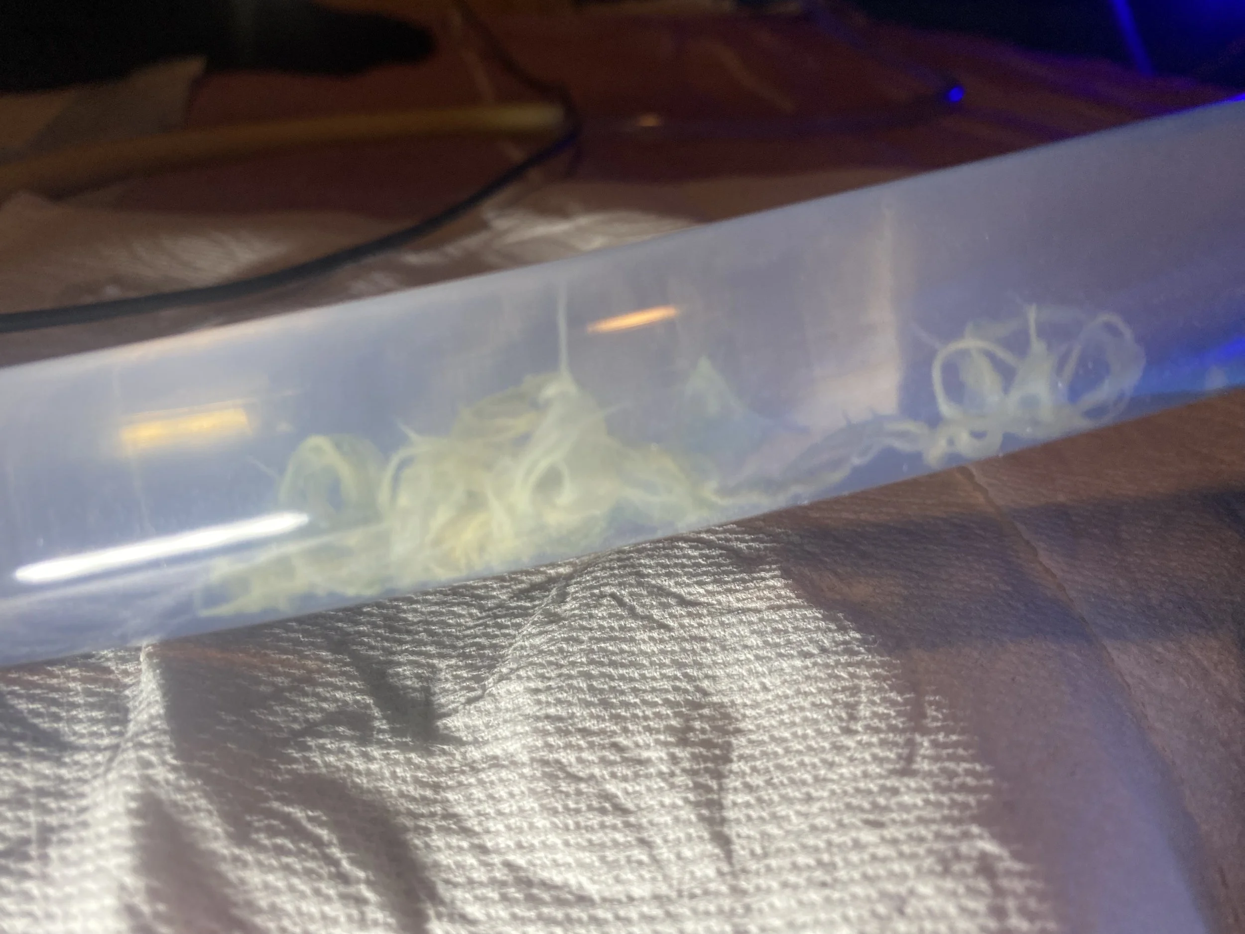 A photographic record of parasites released through colon hydrotherapy, alongside the compassion work, vibrational shifts, and inner revelations that moved them out of the body.